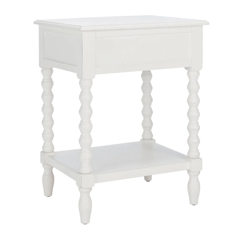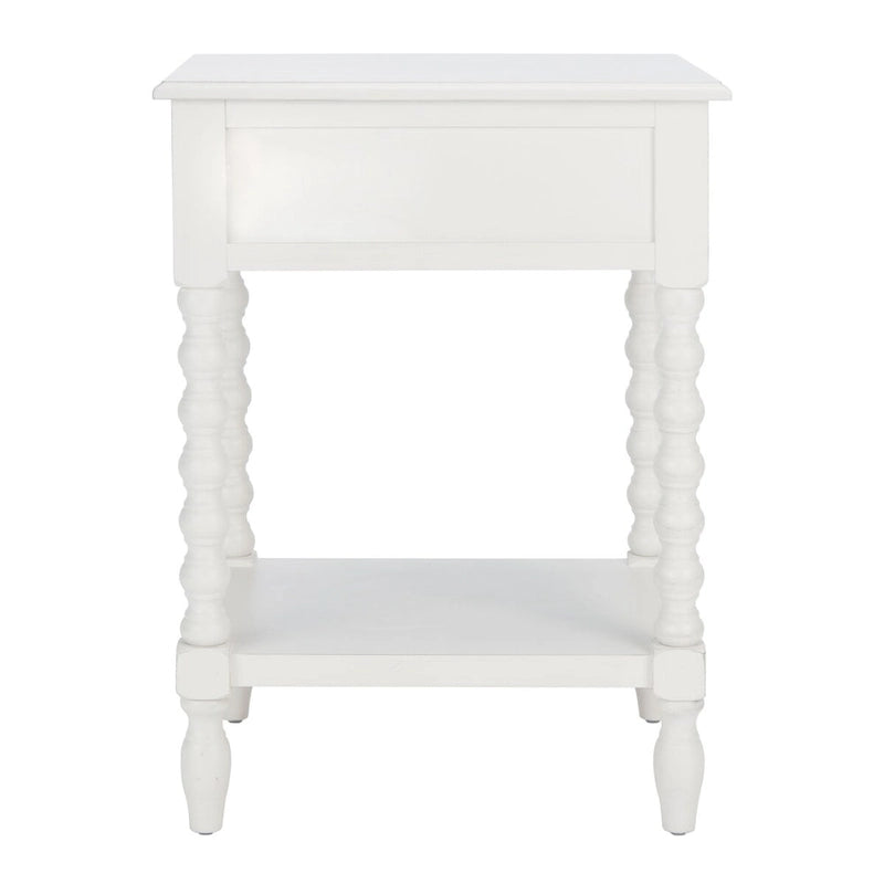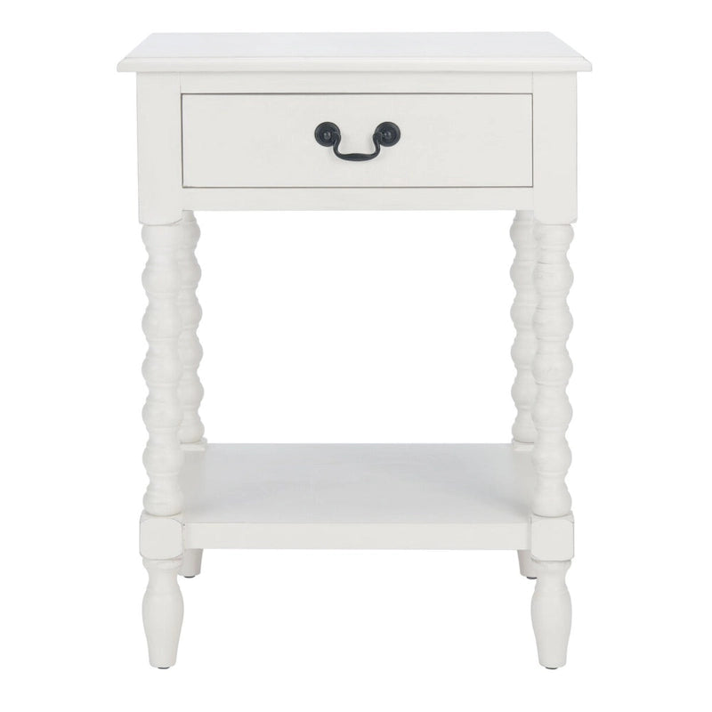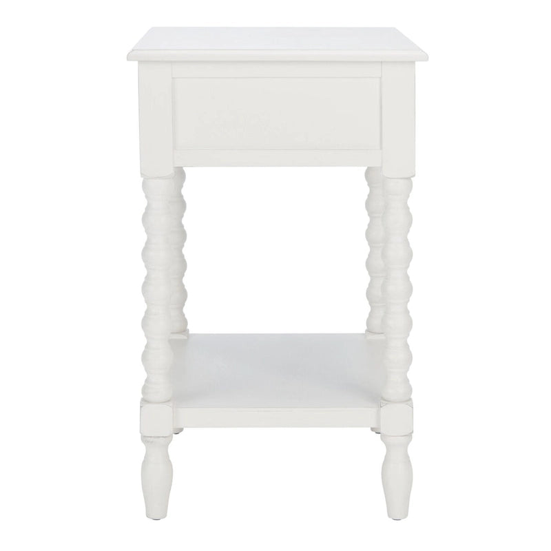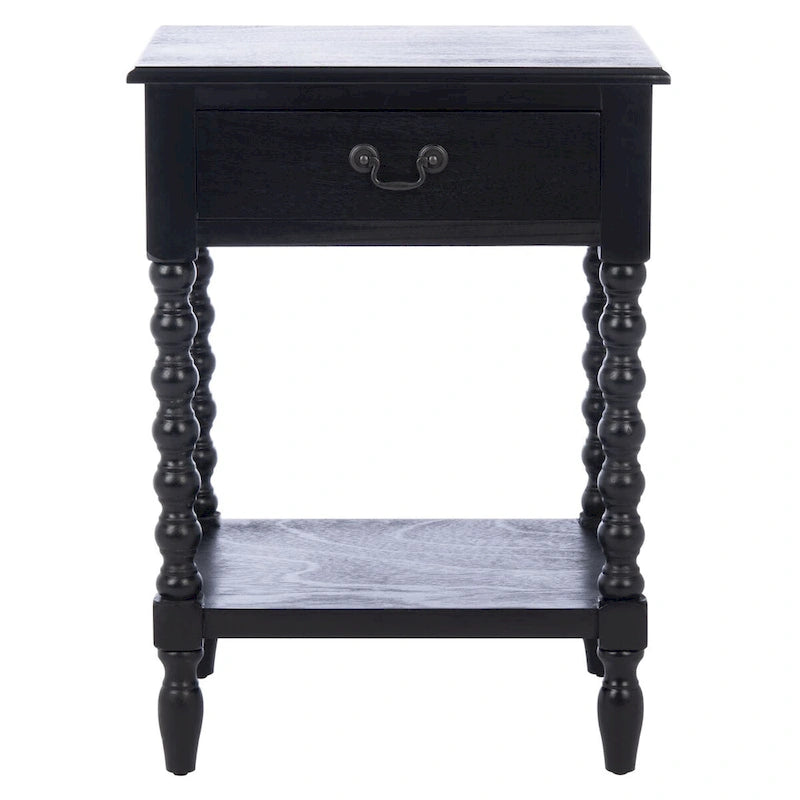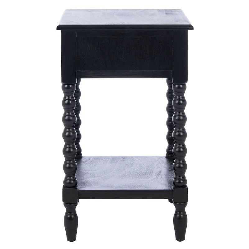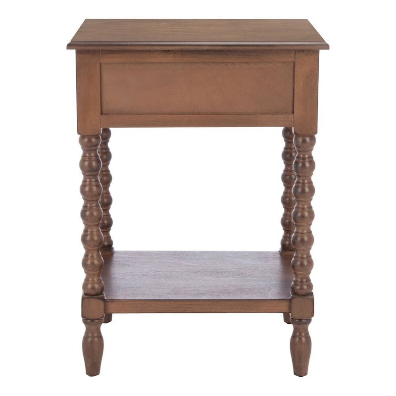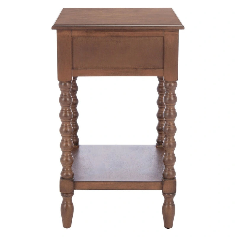 Classic farmhouse charm meets contemporary decor in this Accent Table. This piece's modernized ball turned legs are beautifully highlighted by its finish, while an open bottom shelf and slim drawer provide ample storage and display space.