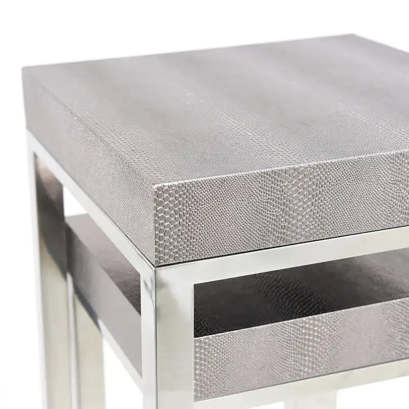 Silver Faux Lizard Leather Tall Nesting Tables Set of 2