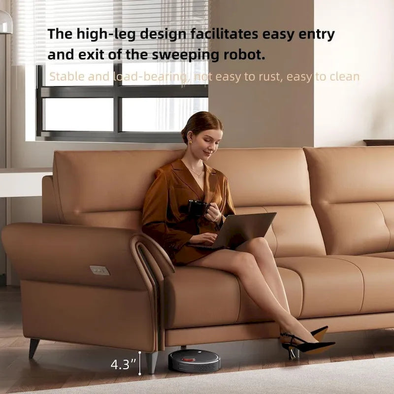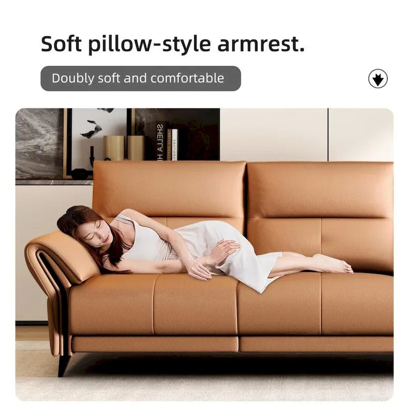 Premium Vegan Leather Upholstery: Crafted from high-quality vegan leather, this sofa surface offers a luxurious feel that is both scratch-resistant and easy to maintain. The breathable material keeps you comfortable in any season, while its durability ensures it withstands years of regular use.