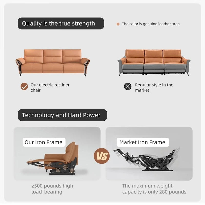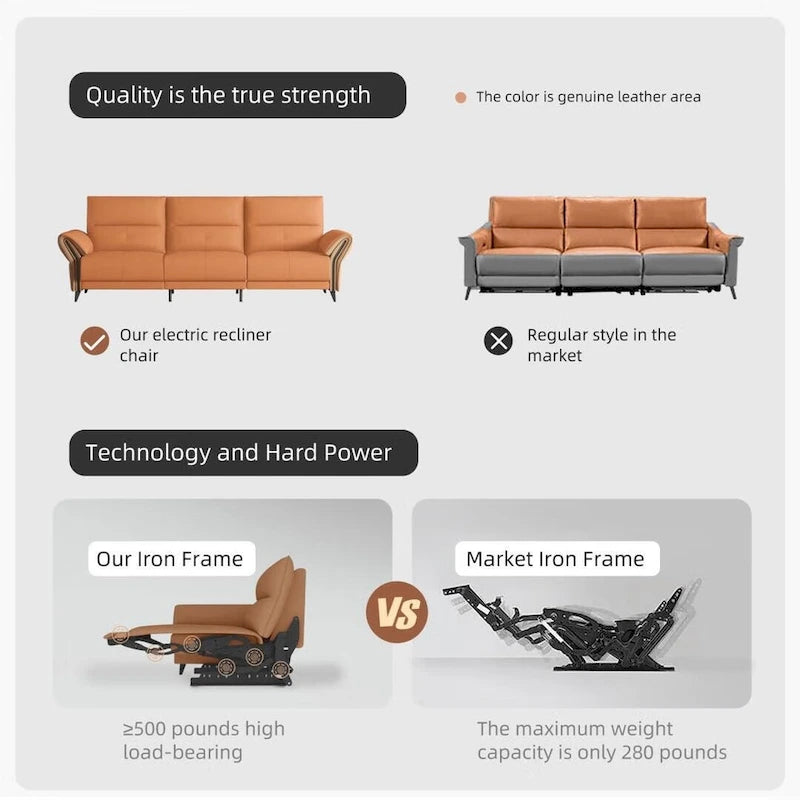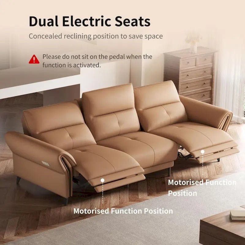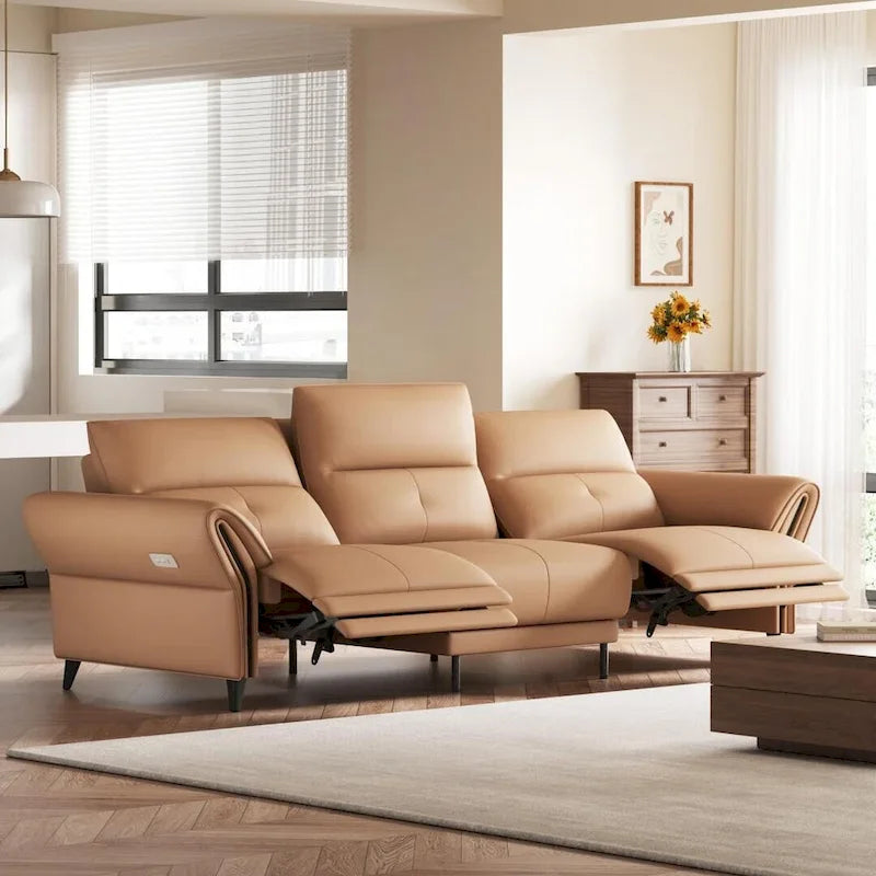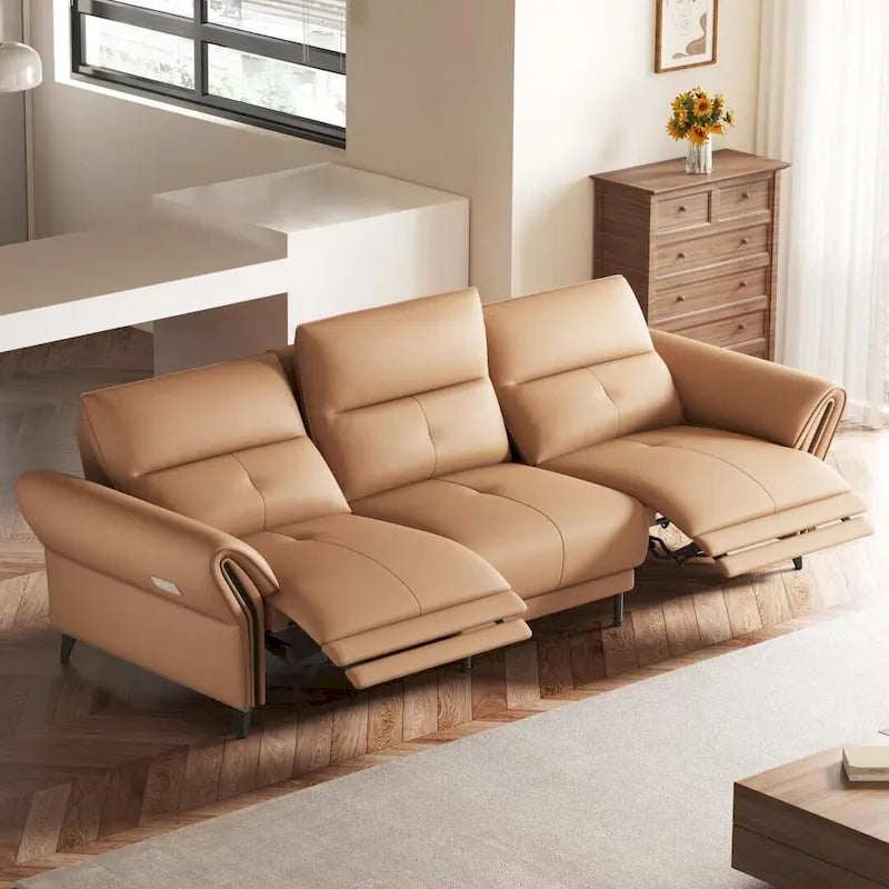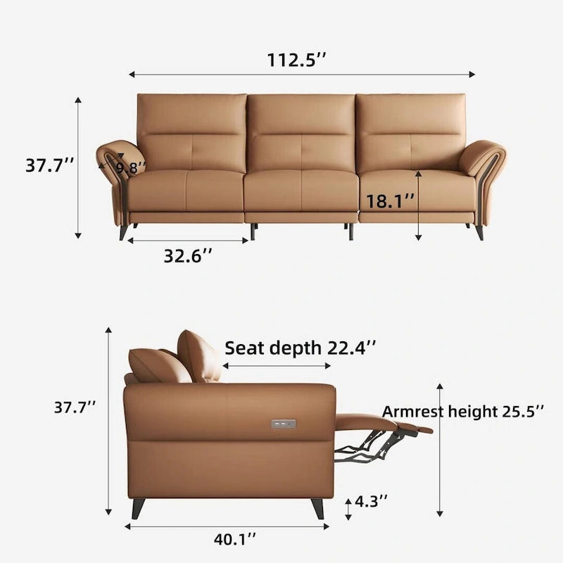 Ultimate Comfort and Style: Our 112.5 Vegan Leather Power Reclining Sofa combines luxurious style with functionality, making it a perfect fit for any modern home. With a smooth reclining mechanism powered by a convenient side button, this sofa offers personalized comfort at the push of a button. Enjoy the refined elegance of vegan leather, which is not only beautiful but also sustainable.