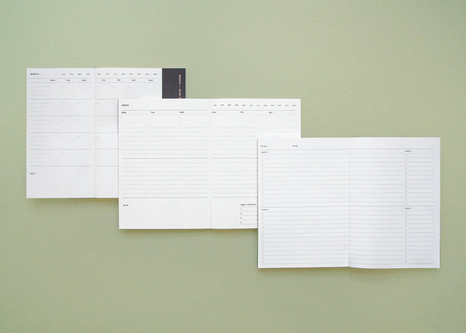 Comme son nom l'indique, il comporte 3 sections pratiques : Mensuelle — Hebdomadaire — À faire.