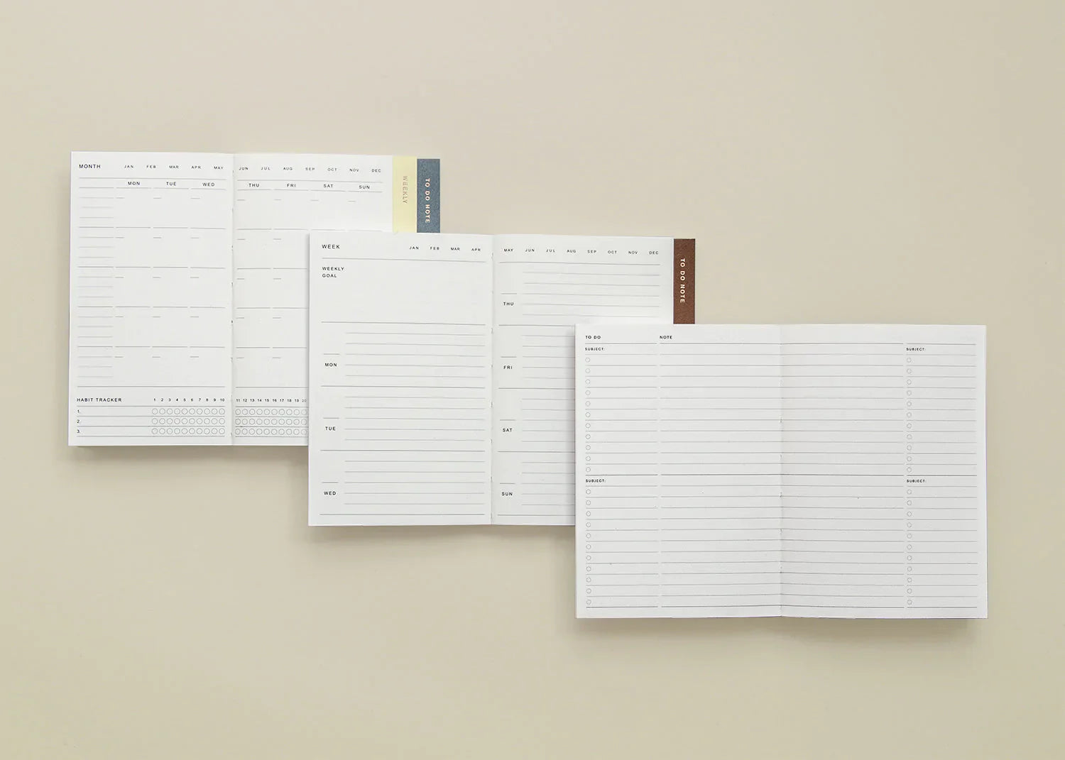 L'agenda de poche ultime qui vous aide à gérer votre temps et vos objectifs, d'une vision globale à une vision microscopique.