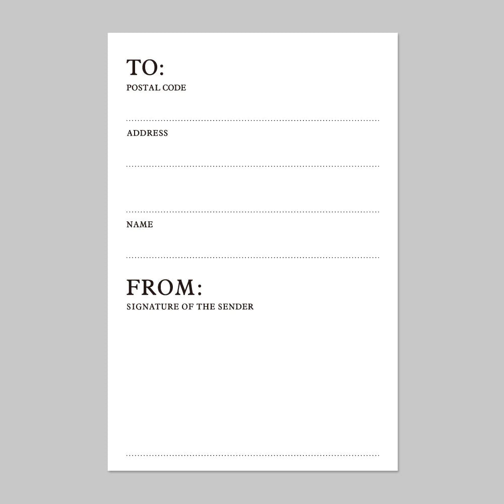 Une étiquette d'adresse permettant d'inscrire les adresses de l'expéditeur et du destinataire. Il suffit de la coller sur le colis. Vous pouvez également la découper et l'utiliser séparément.