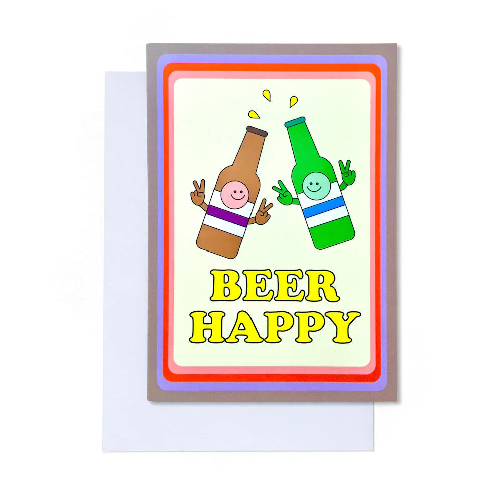 Cette carte fait partie de notre collection V pour Vibes, une collection rétro et joyeuse qui ne souhaite que partager de bonnes ondes. Chaque personnage arbore un smiley et un V triomphant, symbole de victoire. Double V pour la victoire ! Trop cool !