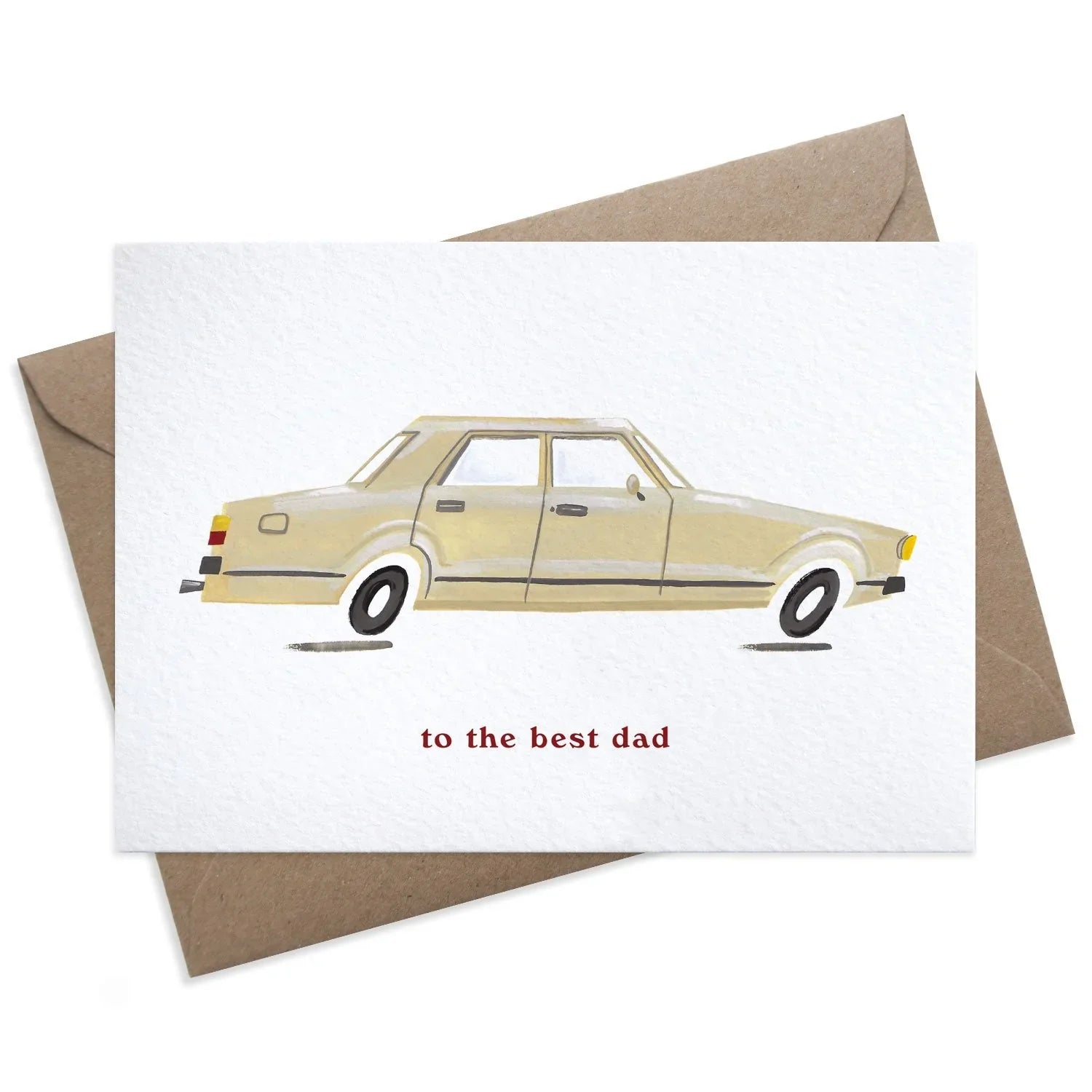 Carte de vœux illustrée avec un motif de voiture classique rétro.