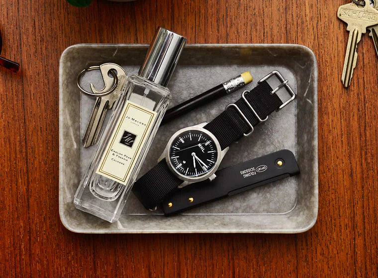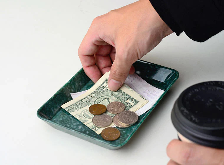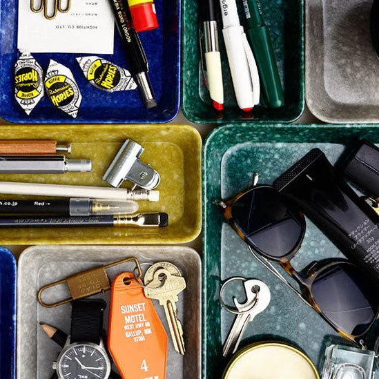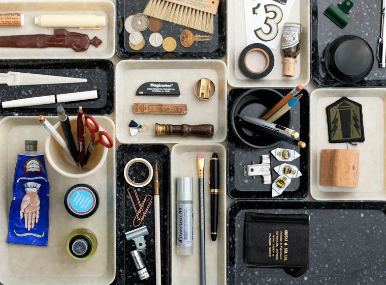 Un plateau en mélamine simple et élégant, orné d'un motif marbre. Idéal pour ranger les petits objets sur le bureau.