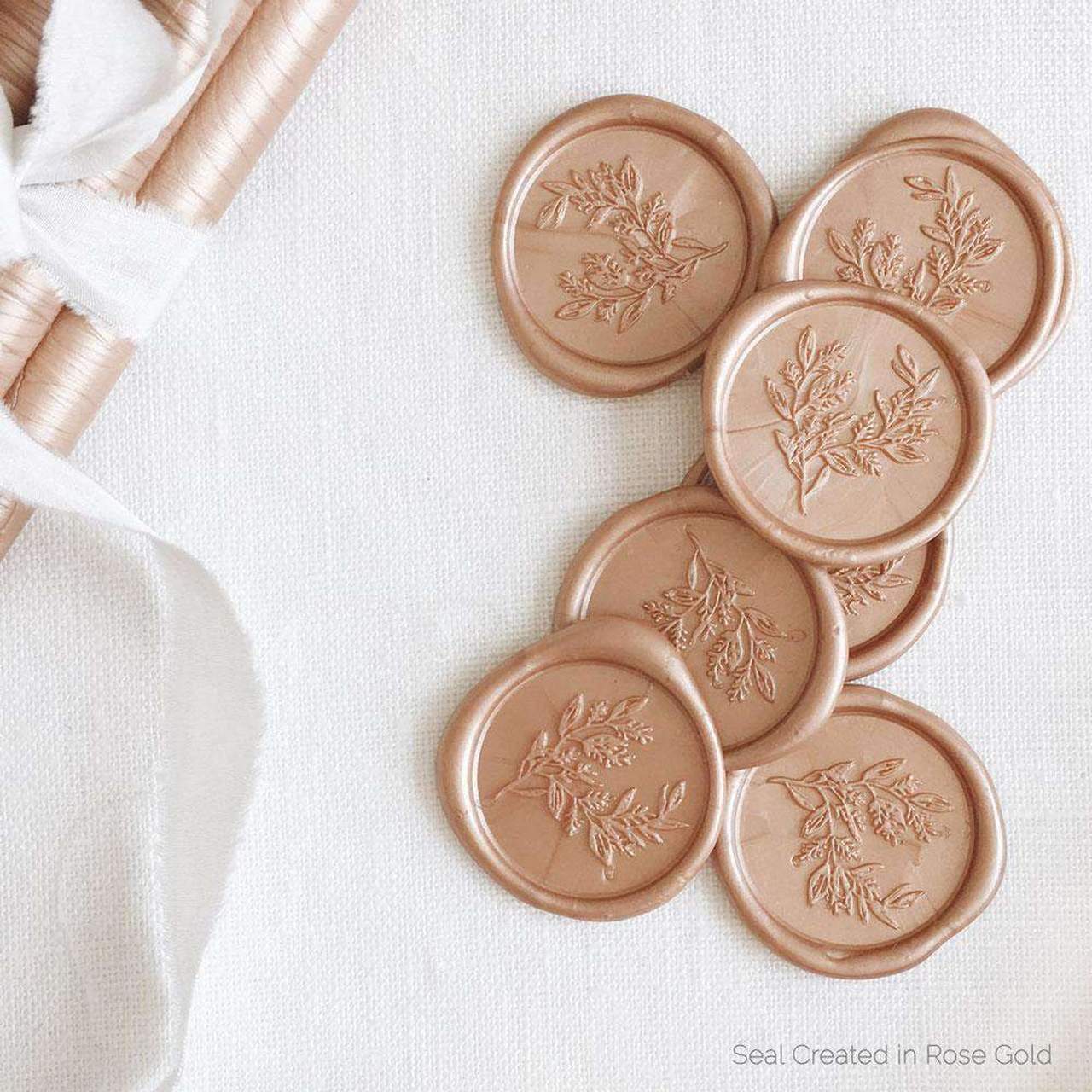 Conçu par l'artiste, calligraphe et designer Paula Lee, Ces sceaux de cire d'eucalyptus sont magnifiquement complexes, feuillus et regorgent de détails raffinés.