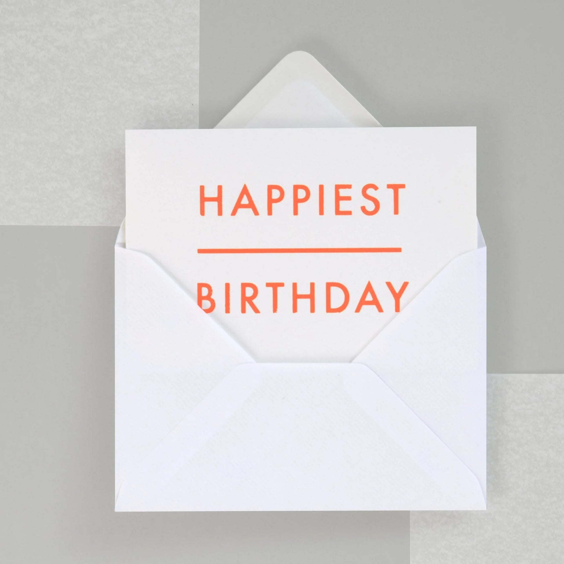 Chaque carte de notre collection Typographique présente un motif typographique imprimé à la main, avec une dorure à chaud orange fluorescente.
