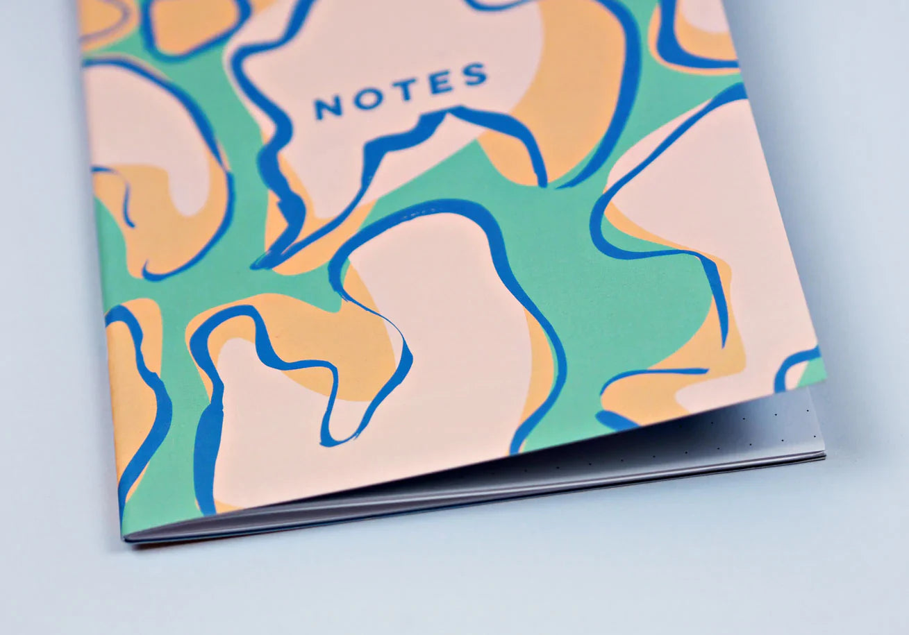 Couverture ornée d'un motif floral abstrait en surimpression | Intérieur de la couverture bleu roi