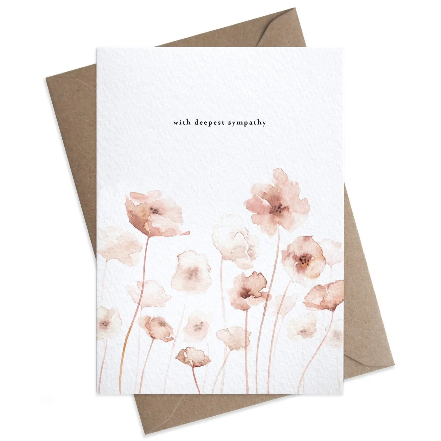 Carte de condoléances ornée d'un motif de fleurs sauvages à l'aquarelle et portant le message « Avec toute ma sympathie ». Intérieur vierge pour votre propre message.