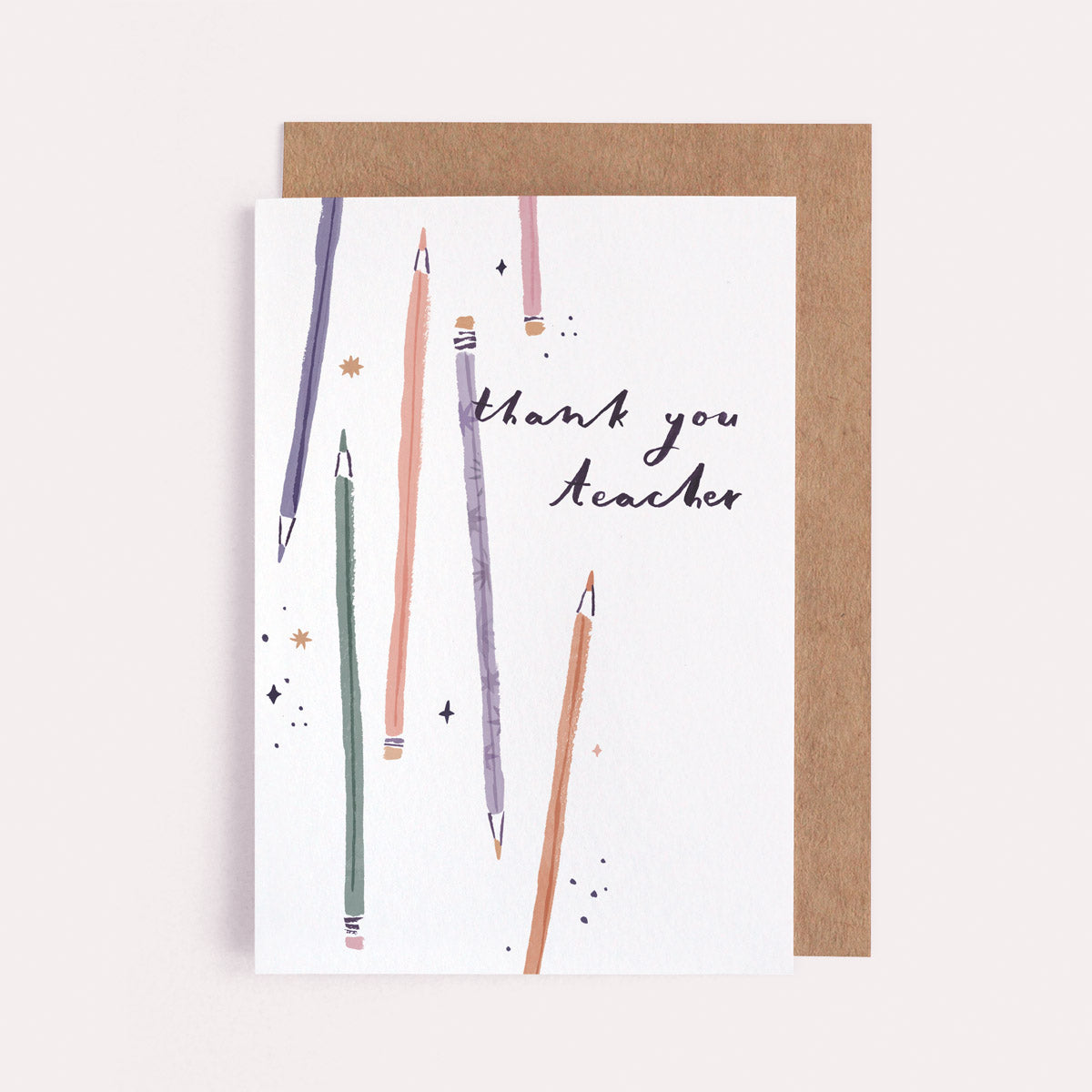 Remerciez votre professeur préféré avec cette carte de remerciement ornée de dessins aux crayons de couleur.