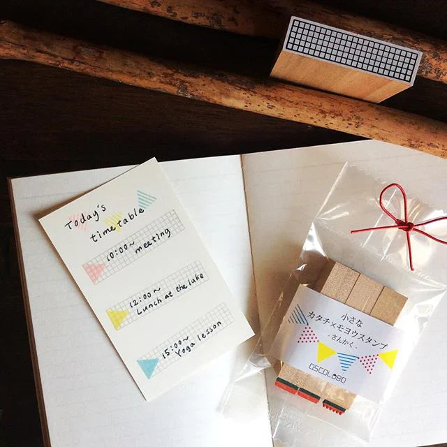 Utilisez ces tampons triangulaires pour créer différents motifs, drapeaux ou rubans. Un ensemble de 3 petits tampons faciles à utiliser.