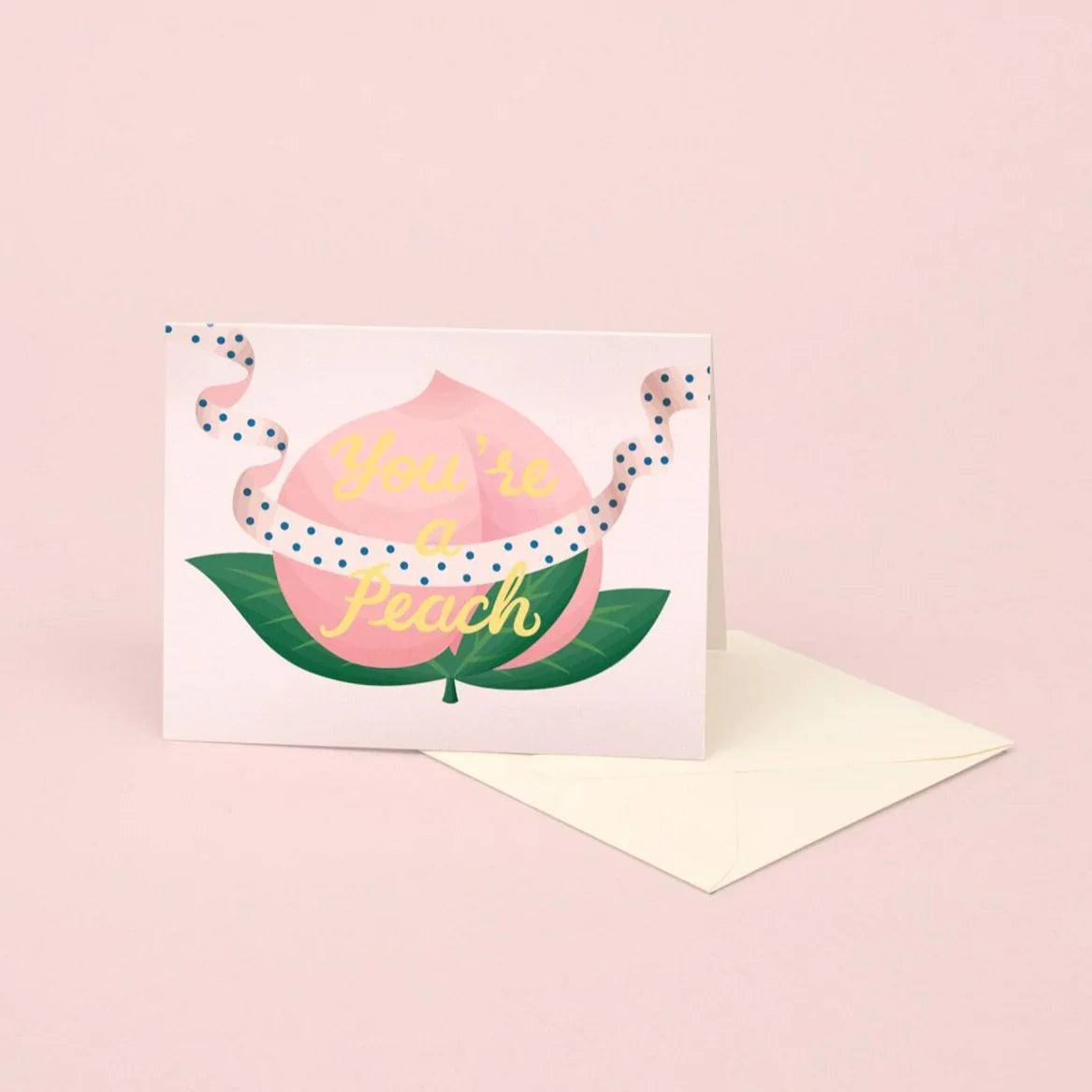 Égayez la journée de quelqu'un avec cette carte amusante ornée d'une pêche fraîche.